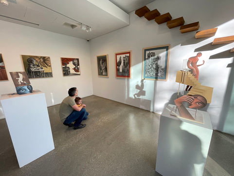 Vladimir’s work captures imaginary moments and narratives based on emotions, intuition and irrationality. Concepts such as inspiration, obsession, temptation, irony and madness are transformed into concrete and vivid images, where various characters are assembled to interact with each other and their environment. Common occurrences are juxtaposed with absurd and nonsensical situations. The artist attempts to make sense of our own actions and interactions through visual metaphors and humor, often going beyond logic and reason.