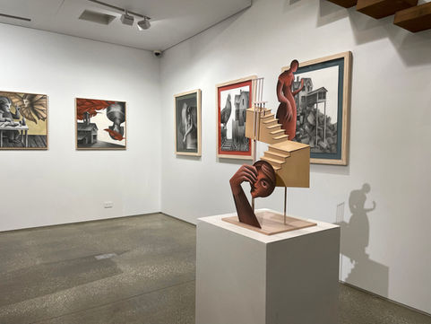 The drawings and structures presented at Random Turns originated from sketches, drafts and studio experiments created over the past few years. Some of Vladmir’s works are further explorations of the ideas that took root in his book illustration projects; other times, the compositions were inspired by random occurrences that happened throughout the day. Many of the artworks were created with much consideration for the environment in and around Turn Park Art Space.